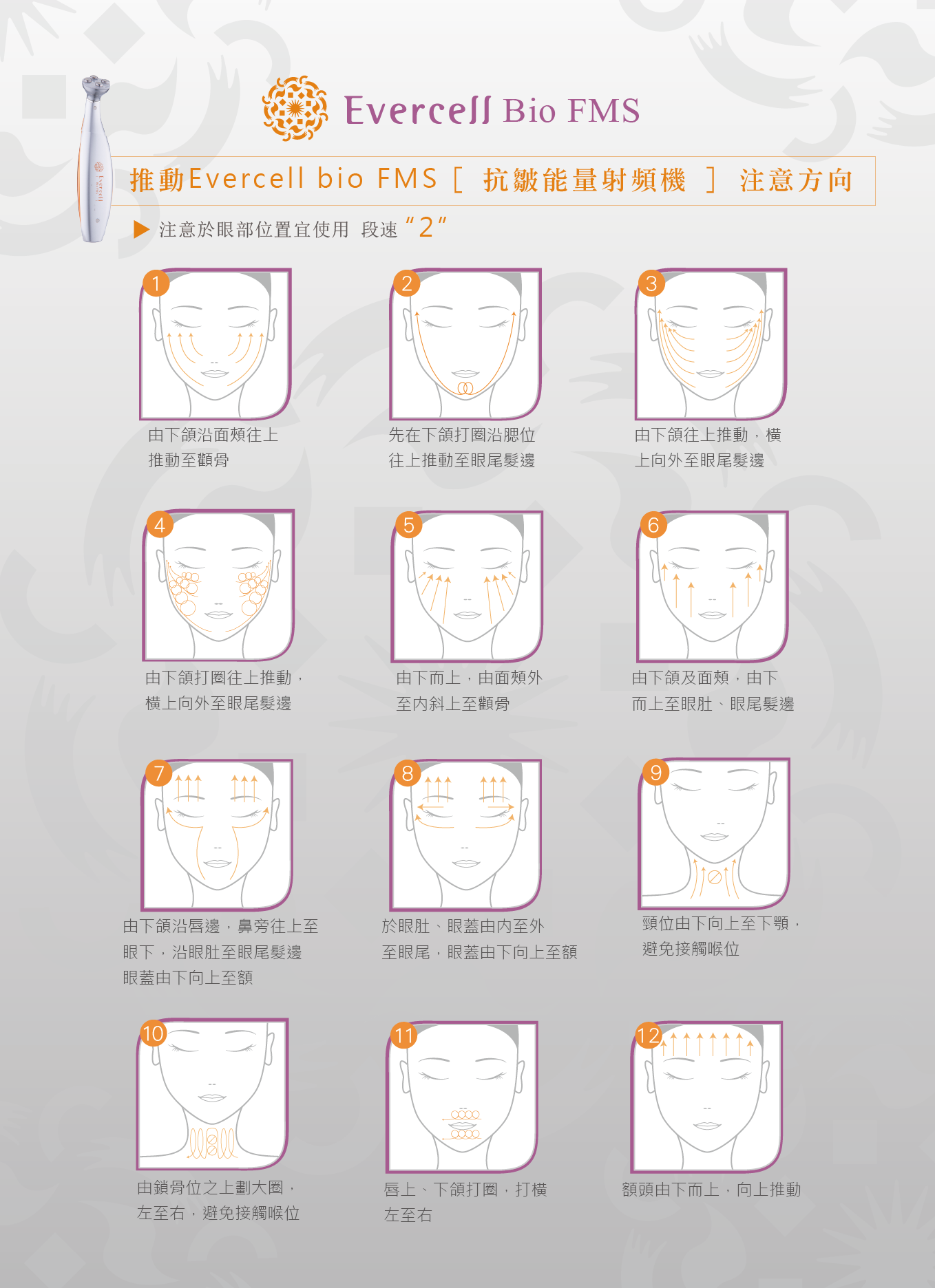 For the best efficacy of Evercell Bio FMS Program,please follow the movement flow show on images. ^.^ ~~~~~